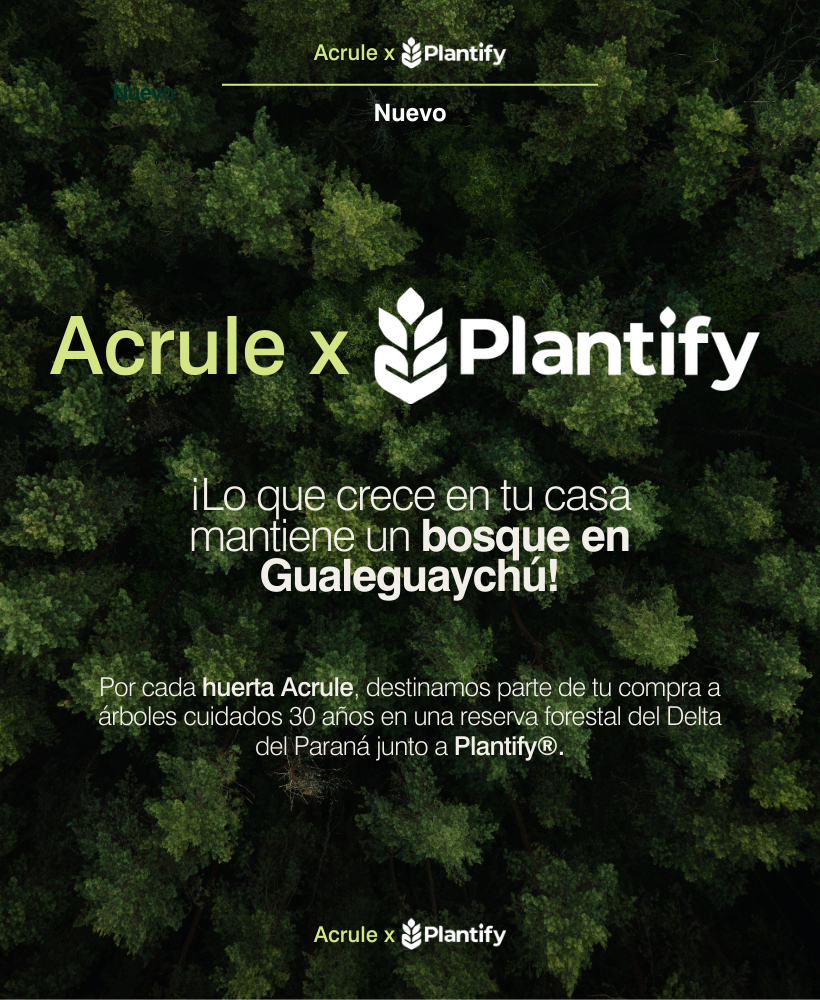 Cada huerta Acrule destina parte de su valor al cuidado de árboles en la Reserva Forestal de Plantify®. Lo que crece en tu hogar hoy, la tierra lo agradece mañana.